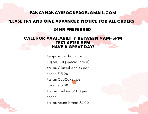Please try and give advanced notice for all orders. 2-3 days is preferred but call for availability between 9am-5pm
